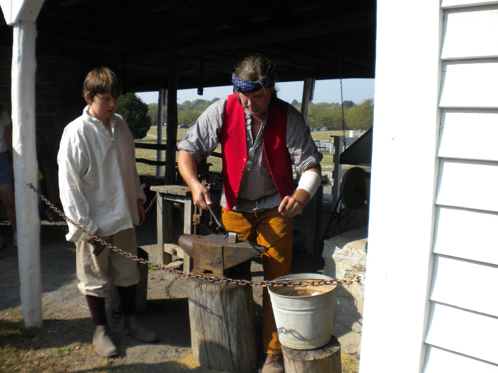 They divided our group of over 60 people into three sections. First,our small group watched a Blacksmith and his "apprentice" son make nails. It was very interactive and relaxed.
