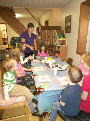 Larry went hunting and so, after having prepared for Thanksgiving, I took the day "off" to do what I wanted to do! That consisted of spending real quality time with nine kids! We hung out at our house and enjoyed a sit-down lunch of wonderful Thanksgiving leftovers.